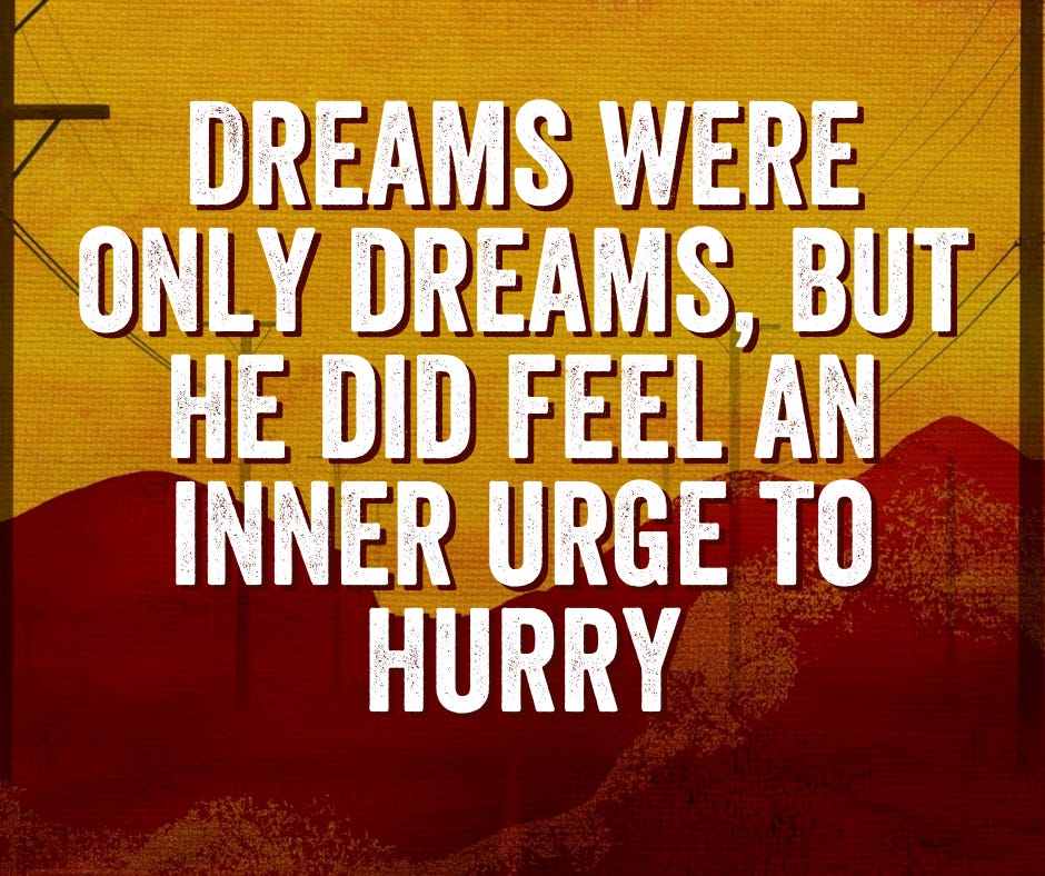 Sarah: There’s an urgency now. I underlined this: “Dreams were only dreams, but he did feel an inner urge to hurry... a subconscious command.” Everyone is feeling it. They’re dreaming of Mother Abagail in Nebraska or the Dark Man in the corn.